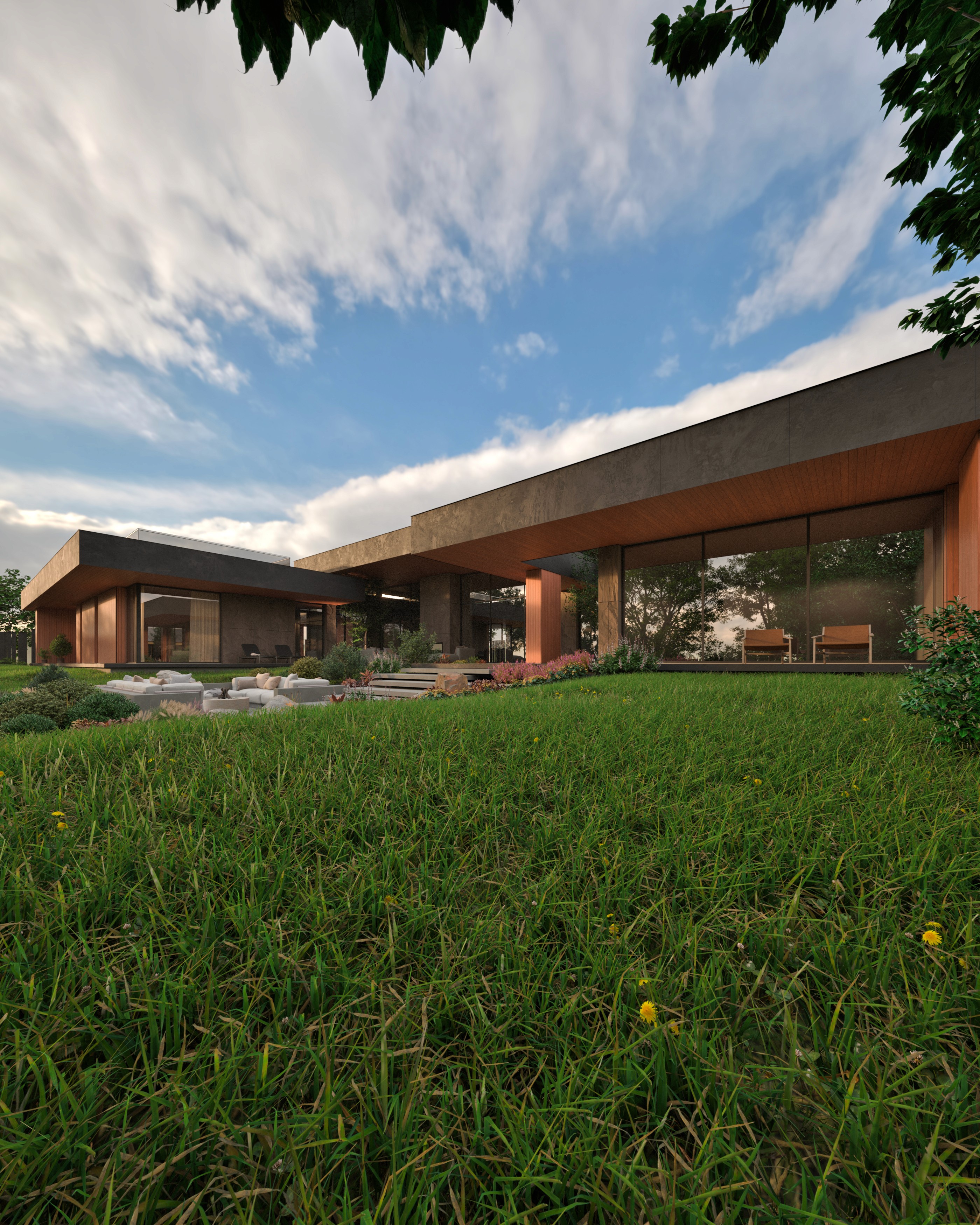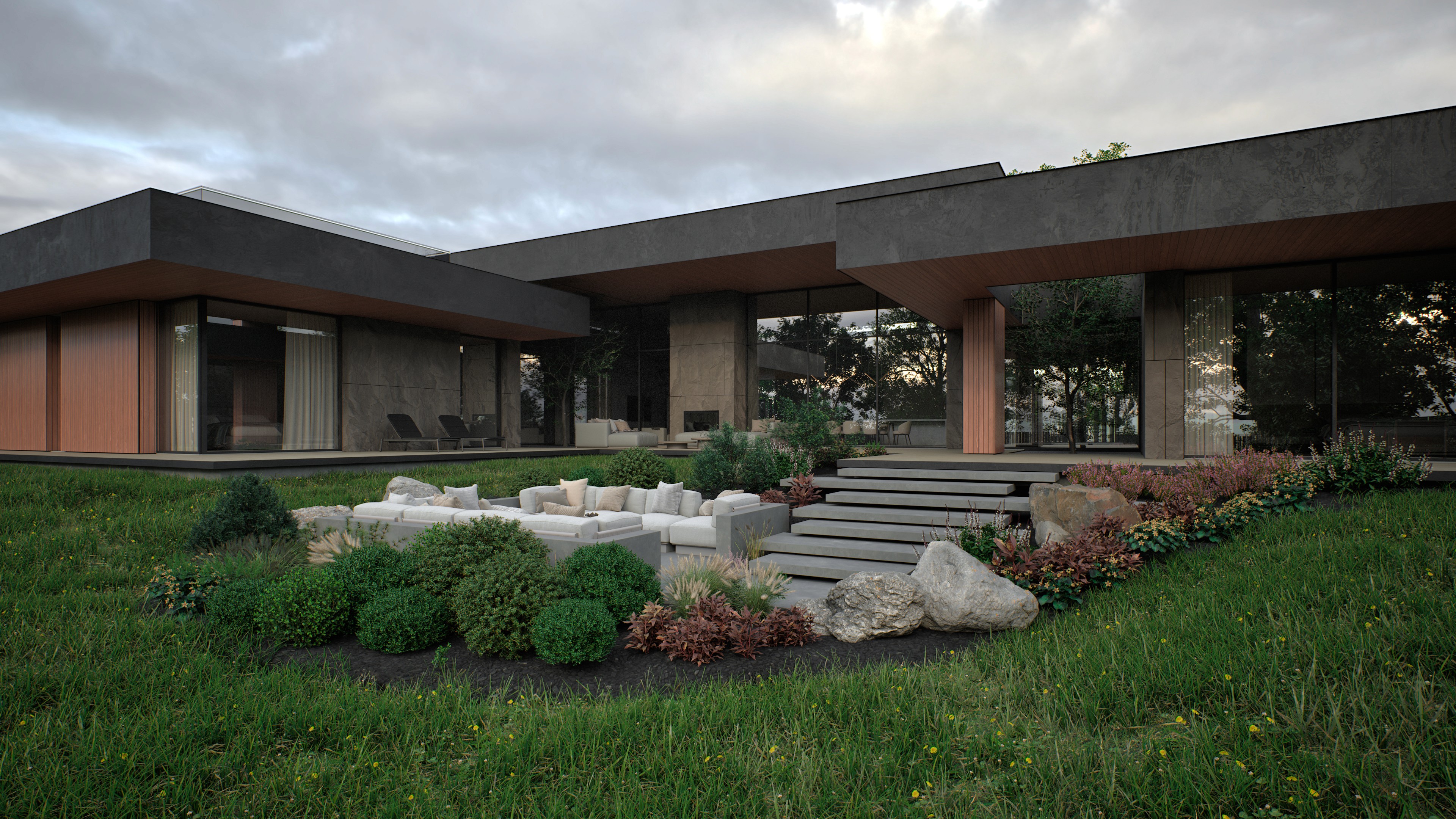 The Landscape House is a private residence defined by clean contemporary architecture, generous glazing, and a strong connection to the surrounding landscape. Cubic volumes, warm wooden finishes, and floor-to-ceiling windows open the interior toward the garden and natural environment. Our role was to translate the architectural concept into a cinematic visual language, with a strong focus on realistic landscaping and facade detailing. From exterior material textures to rich greenery, every element was crafted to feel grounded and authentic. A subtle layer of natural imperfection in the lawn was intentionally preserved to reflect regional character and avoid an overly polished look.